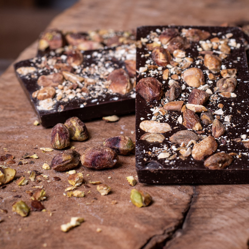 Složení: kakaové boby, třtinový cukr, pistácie, sůl, mandle, lískové ořechy, arašídy a kešu