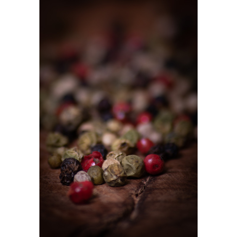 Složení: pepř bílý, pepř černý, pepř zelený, pepř růžový (Schinus Terebinthifoilius)
