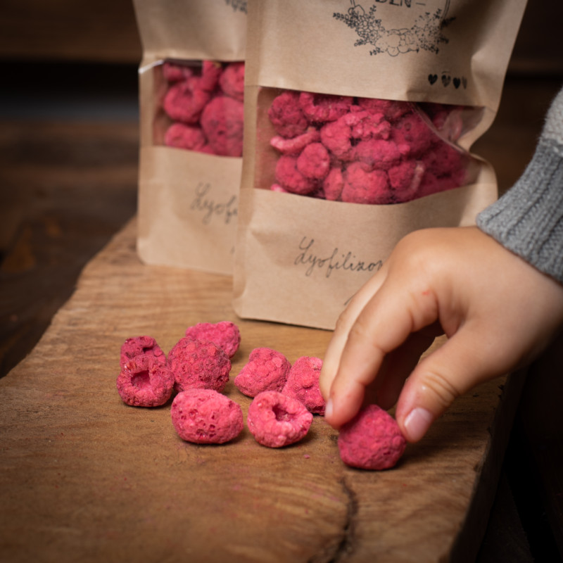 Mrazem sušené maliny jsou krásně křupavé a chutnají prostě božsky. Hodí se nejen na jogurt k snídani, k ozdobení dortů a jiných dezertů, ale i jen tak k celodennímu mlsání.